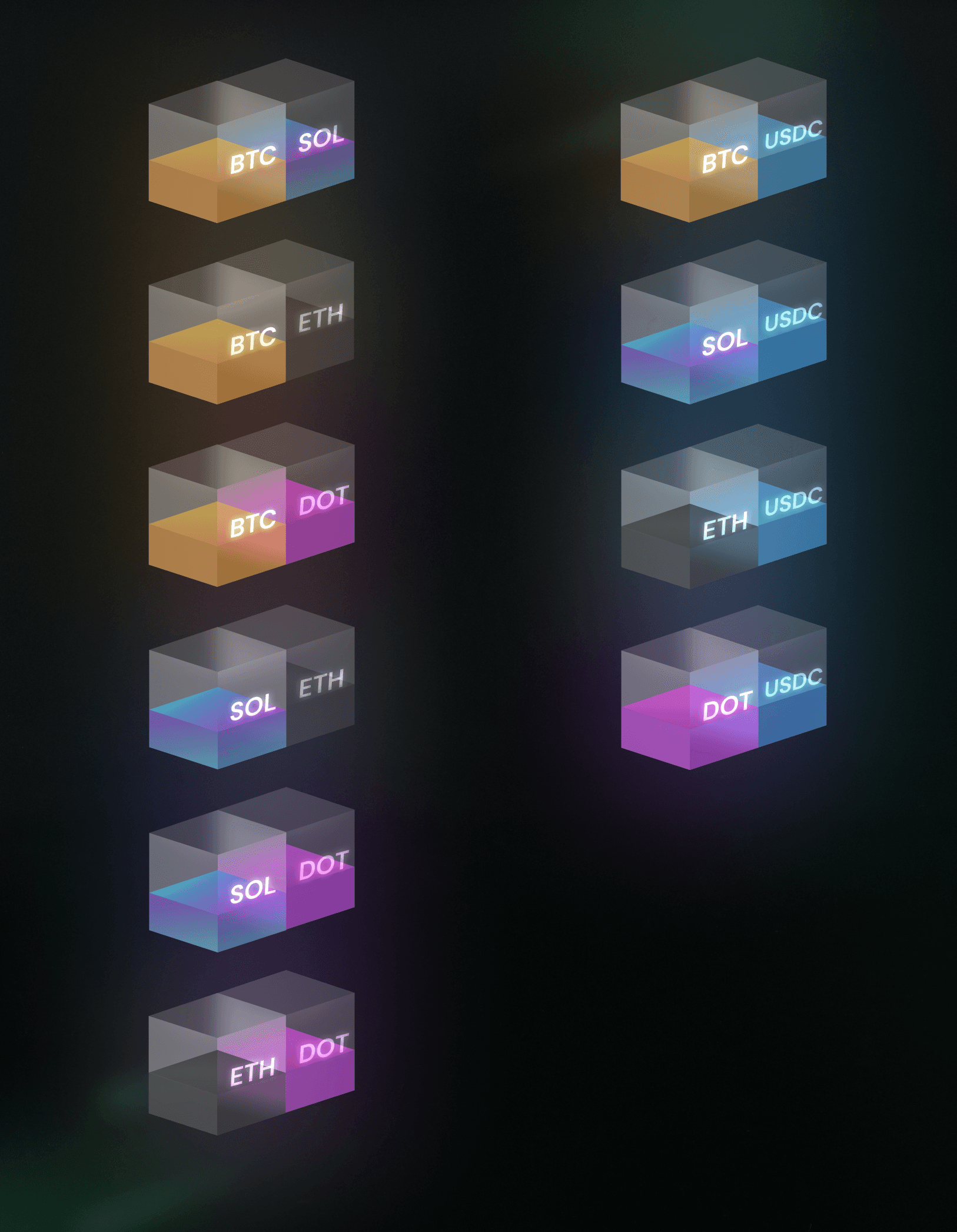 • Choosing a stable asset as the base pair allows market makers to easily aggregate liquidity from secondary markets and to open hedging positions that can offset Impermanent Loss (IL).